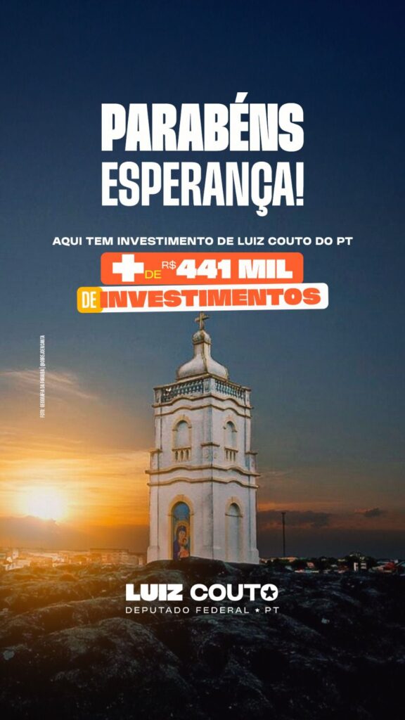 Deputado Luiz Couto destina R$ 441,5 mil a Esperança e Parabeniza o Município pela Emancipação Política